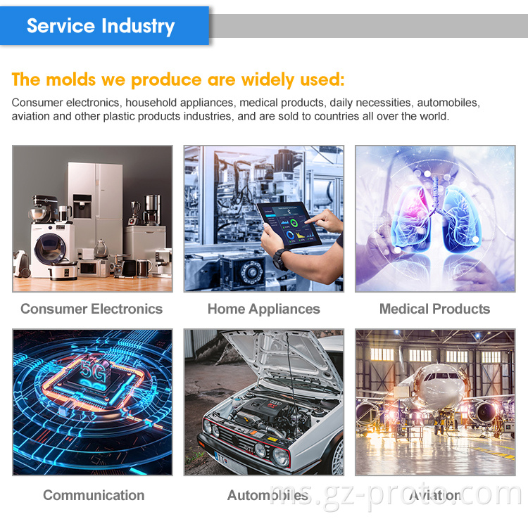 Industri Perkhidmatan: Elektronik pengguna, peralatan rumah, produk perubatan, komunikasi, kereta, penerbangan dan sebagainya.